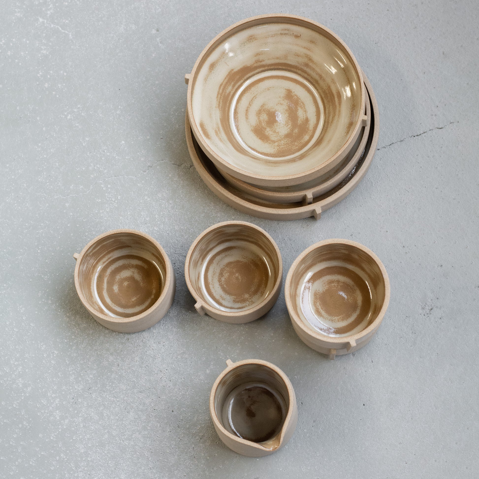 Met deze mooie schaal zet je een prachtige eye catcher op tafel. Gedraaid met toffee kleurige klei en afgewerkt aan de binnenzijde met toffee kleurige glazuur. De buitenzijde is onbewerkt waardoor het een mooie matte en natuurlijke uitstraling heeft.